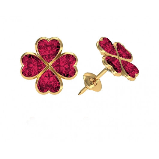 Brincos Ouro 18K Trevo De 4 Folhas Vermelho